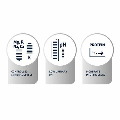 - Adjusted magnesium content and reduced concentration of phosphorus, may limit building blocks for urinary stones