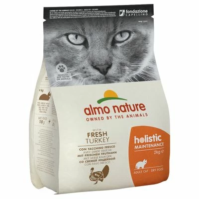 Almo Nature Holistic Turkey & Rice is a delicious, well accepted complete dry food for adult cats of all breeds. It contains more than 44% high-quality turkey, with 26% fresh turkey that has been gently prepared and naturally preserved. This high-quality dry food is particularly flavoursome and easy to digest, providing a natural recipe ideal for meeting all of your cat’s nutritional needs in a species-appropriate way.