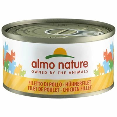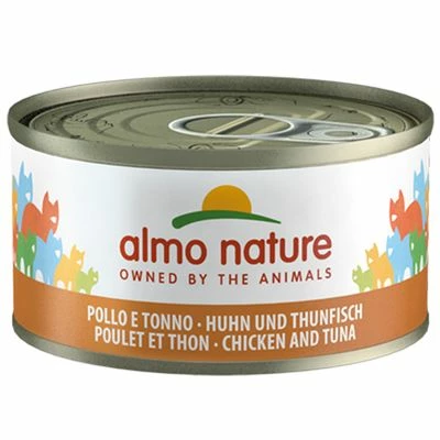 Please note: Almo Nature cat food is entirely natural. Every single flavour of Almo Nature wet food (tuna, chicken, salmon etc.) contains its own proportions of vitamins, minerals (e.g. calcium, phosphorus) and taurine. Almo Nature therefore recommends a diet which is based on a variety of different natural foods (red meat, poultry, fish, dry and wet food). The varying nutrient contents of this variety will ensure a balanced diet for your cat.