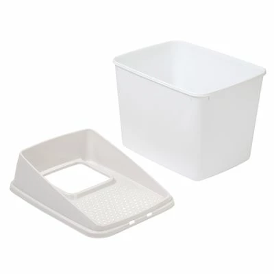 Spacious cat litter box with a top entry and removable lid, ideal for large cats, multi-cat households and cats that stand when urinating. It is easy to clean and has holes in the top.