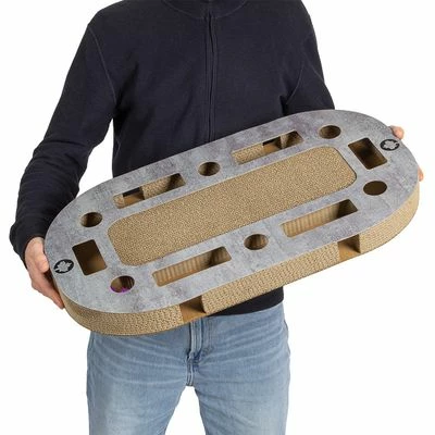 Sophisticated cat playground, with generous scratching surface, sturdy construction, integrated ball track incl. play balls, made of environmentally friendly corrugated cardboard, free of harmful substances, dimensions: L 65 x W 35 x H 5.8 cm