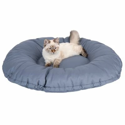 2-in-1 bed for cats and small dogs, reversible with the choice of a cuddly cushion or a bed with raised border, made from natural cotton outer material, easy to care and particularly snuggly.