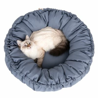 Is it a bed or a cuddly cushion? Why not both? This Cape Town 2-in-1 Cat Bed is a versatile accessory that can be used as your cat pleases. By pulling a drawstring you can raise the border and change the large, round cushion into a cosy snuggle bed with a high edge to lean against.