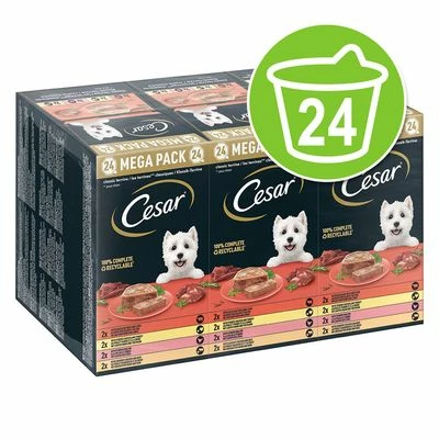 The Cesar Trays Multipacks are made with natural ingredients and contain no sugar, artificial colours or artificial flavours. The recipes contain juicy meat, beneficial vitamins and minerals. The canine meals are gently prepared to help retain natural nutrients and flavours. Now you can serve your dog a delicious high-quality dish at every meal.