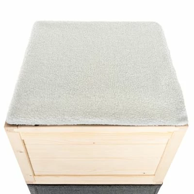 The three-storey cat tower is sturdy and robust, withstanding even the wildest of playing. There is also a comfortable lookout platform on the top that allows your cat to watch the world go by. The den is made from a stable material that is perfect for hiding away and relaxing. The opening in the roof allows your cat to reach the next level up. The Cubist Cat House features scratching posts coated in natural sisal on two different levels, ideal for scratching and sharpening claws. For extra laying comfort, there is also a cushion with foam padding.