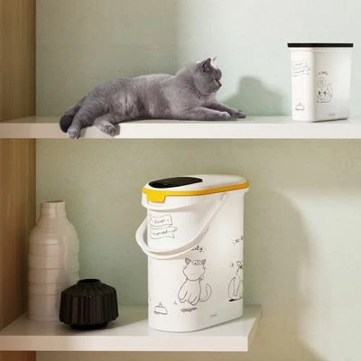 The rubber seal between the lid and the container of the Curver Cat Silhouette Dry Cat Food Container creates an airtight closure, which helps to preserve the flavour and freshness of the dry food, as well as keeping the smell inside. There is a separate opening in the lid that allows you to portion your cat’s food easily.