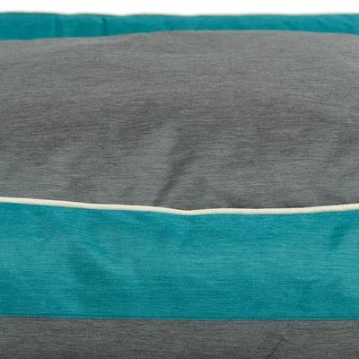 Robust dog bed perfect for a covered outside area like a balcony or terrace. Waterproof PU coating, sturdy bottom with anti-slip nobs and integrated ventilation eyelets. Colour: turquoise / grey.