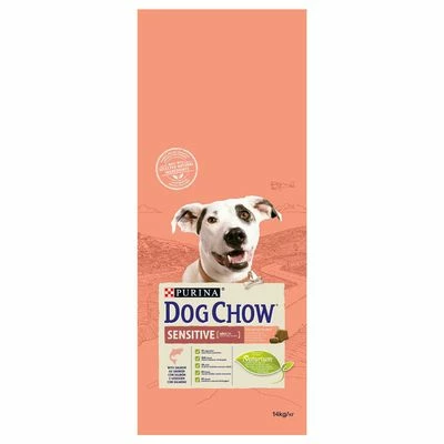 Purina Dog Chow Adult Sensitive is enriched with nutritious salmon, a source of protein & vital omega fatty acids, to support dogs with sensitive skin or digestion.