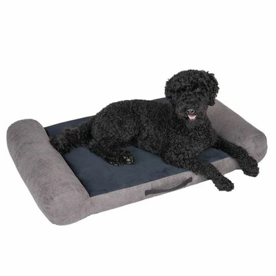 Comfortable mattress for dogs with orthopaedic memory foam, adapts to the body & relieves joints, soft lying surface & thick edge, cover made of high-quality upholstery fabric, colour: grey / black