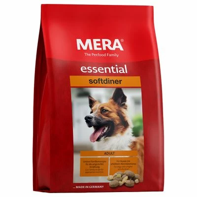 - MERA essentialSoftdiner: is a high-quality mixed menu for adult, active dogs with increased energy requirements, with visible components such as meat croquettes, vegetable and cereal flakes