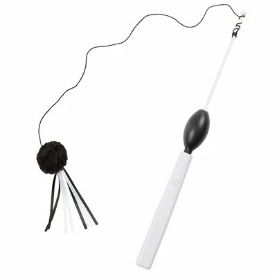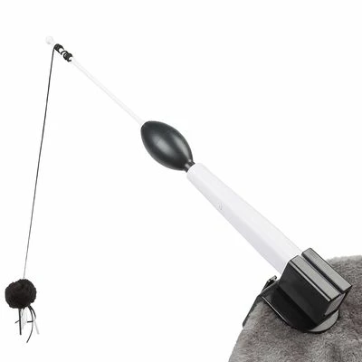 Play fishing rod for cats, with funny bobble and fringes, fully automated, to keep your cat busy, battery-operated, can be attached to various pieces of furniture, length: 35 cm