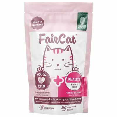 - FairCat Beauty: contains hemp oil and valuable fatty acids to support skin and coat, prepared with species-appropriate chicken and salmon