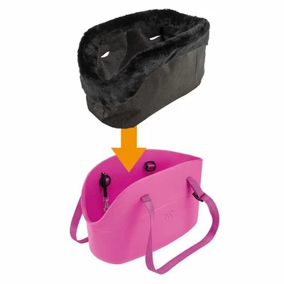 Comfortable carry bag for cats and small dogs weighing up to 8kg, made from an elastic, easy-to-care material with a cuddly lining and modern design, as well as a securing tab for collars.