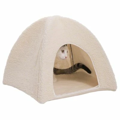 A cute retreat to hide away and snooze, made from faux sheepskin with a removable, cosy mat, that can be folded up. The inner plastic rods support the tent and ensure that it keeps its shape.
