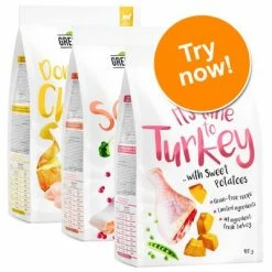 Can’t choose between It’s Time to Turkey, Some Salmon to Love and Don’t Worry – Eat Chicken? Try the mixed pack with 3 x 400g grain-free premium dry cat food, made with only a few, choice ingredients.
