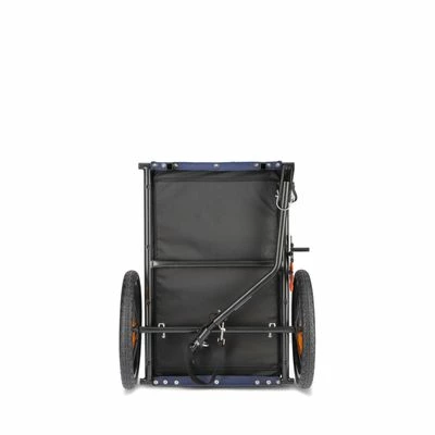 Sturdy dog trailer for bikes with an included jogging kit with push bar and extra front wheel. With a well-ventilated cabin that protects your dog from sun and rain.
