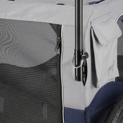 The dog trailer has a drawbar suspension, which absorbs any shocks and creates a smooth ride for your dog. Mesh inserts keep the cabin well-ventilated and the included padded mat serves as a comfortable lying surface.