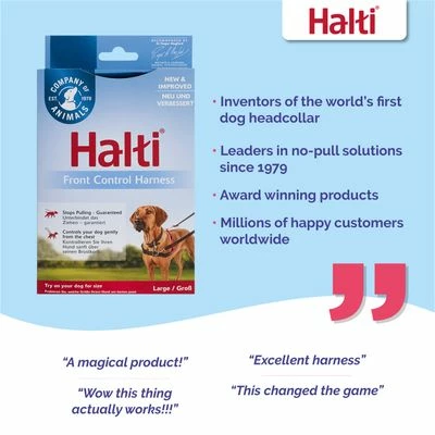 Pulling can spoil even the most enjoyable walks with your dog, so this Halti Front Control Training Harness is a great option for helping eliminate this problem. The revolutionary control system shares the tension across the chest and shoulders. The partially padded Halti Front Control Training Harness allows you to direct your dog in a gentle, healthy way.