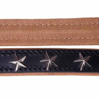 This adjustable dog lead is made from top quality leather. Decorated with 5 stars and backed with soft beige leather.