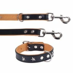The beautifully crafted lead and collar are both made from top quality leather. The collar has fashionable star decorations and is a collar for all occasions.
