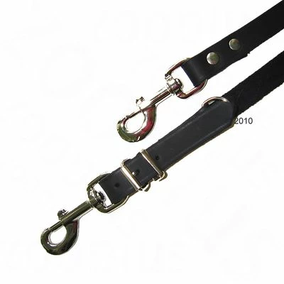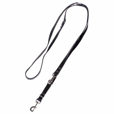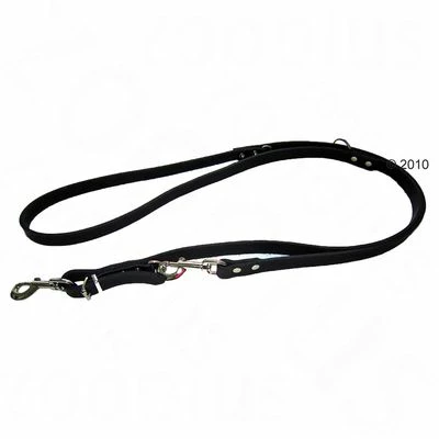 Riveted dog lead from Heim, made from soft, oiled black leather, adjustable to three lengths.