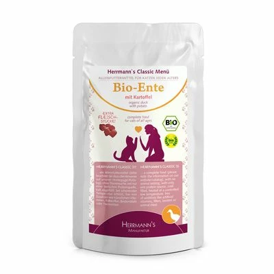 - Cats are carnivores, as a species-appropriate, healthy cat food Herrmann’s Organic-Menu has an extra high organic meat content of 96%