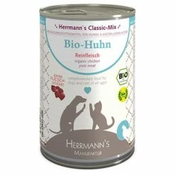 - All the meat in Herrmann’s Organic Meat wet food comes from organic farms where animals are humanely raised and slaughtered – love for animals is not limited to dogs and cats.