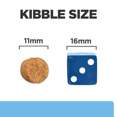 This tasty dry dog nutrition from Hill’s contains 17% chicken, and is particularly rich in unsaturated fatty acids such as Omega-3 and Omega-6. In addition, a balanced mix of vitamins, minerals and trace elements as well as beta-carotene and natural antioxidants support your dog’s general health and promote a strong immune system. This high quality dog nutrition is prescribed by vets to provide effective support in boosting your dog’s skin barrier function and to help your dog to regain its glossy, healthy coat.