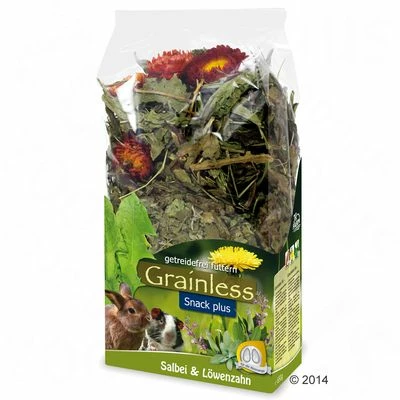 The JR Farm Grainless Snack Plus Combi Pack contains three delicious varieties: Chamomile and Dandelion, Caraway and Dandelion, and Sage and Dandelion. Each snack is 100% grain free and contains no sugar ingredients. The natural mixtures of grasses and tasty flowers are rich in natural vitamins and support dental abrasion and healthy digestion with their natural fibre content.