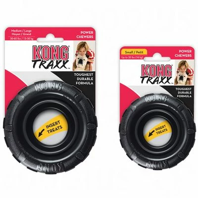 The KONG Traxx is a robust toy made of durable rubber – another top-quality product from KONG. The unusual tyre shape makes this toy easy to carry. The elasticity of the tyre makes for great fun in throwing and fetching games, as it bounces around unpredictably. The opening in the middle of KONG Traxx can also be filled with treats for your dog to snuffle out, providing endless amusement.