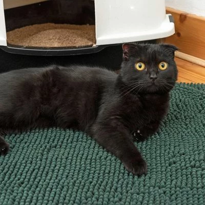 - As a toilet mat for the cat’s litter tray: fabric nubs make it easier to wipe off litter residues, reduce litter crumbs in the living area