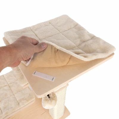 So you can choose your favourite spot and always have a good view of what your housemates are up to. When you’re a little older, the little scratching paradise is also suitable as a staircase to higher furniture that’s easy on the joints! By the way, all platforms and the stable base plate are made of genuine Baltic birch plywood and come from sustainable forestry. So your humans are not only doing something good for you, but also for the environment.