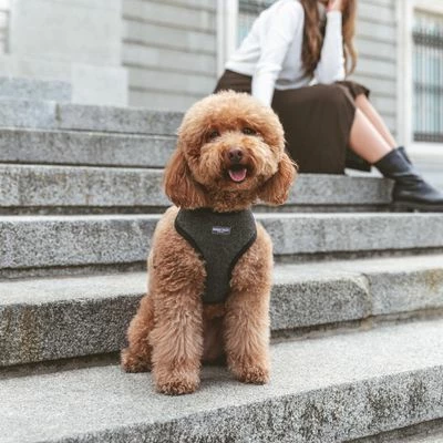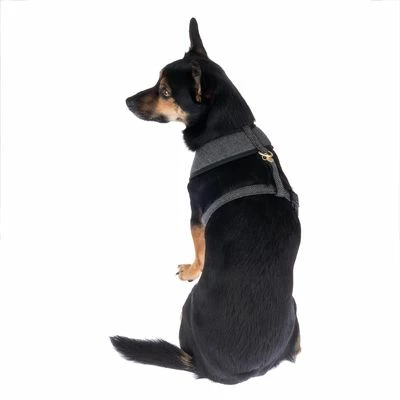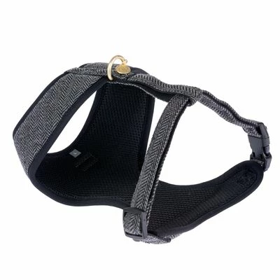 Elegant harness for dogs, in noble herringbone look, with comfortable, mesh-padded chest piece, waist circumference infinitely adjustable, soft & breathable, for all sizes, made of polyester & nylon.