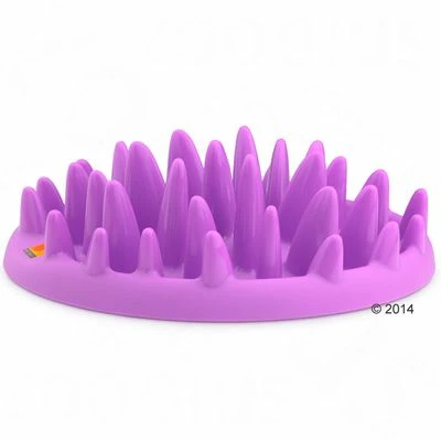 An innovative bowl to encourage slower eating. The rounded spikes turn dinner into a challenging playtime, to make meals last longer and promote healthy digestion. For dry and wet food. Colour: Purple