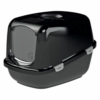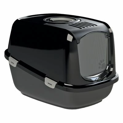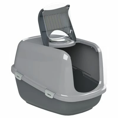 A clever hooded litter tray, ideal for large breed cats. With a double bottom for easy cleaning and a charcoal filter to trap odours. With wooden litter and litter scoop included.