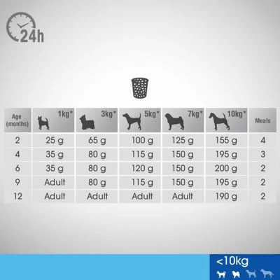 Dry food for small breed puppies under 10kg, rich in chicken as a source of high-quality protein, helping to support optimum growth with size-tailored kibble ideal for smaller jaws.