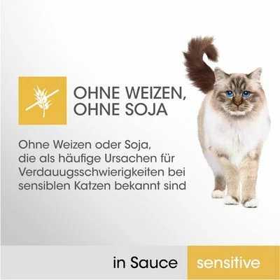Balanced wet food for sensitive neutered cats 1+ years old, delicate chunks in sauce, no wheat or soya, easily digestible, with vitamins, omega fatty acids and high-quality protein