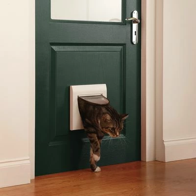 A manual cat flap with 4-way locking options and ideal for cats weighing up to 7kg. It has an integrated tunnel and a magnetic closure, with a swing flap that helps protect your home from draughts.