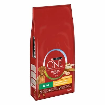 Dogs that are active need more energy. This Purina One Medium/Maxi Active Chicken provides your dog with an energy- and nutrient-rich complete food that has been specially developed for medium and large breed dogs with high activity levels. This dry food has high levels of protein and fat, which can help support your dog’s nutrition during times of greater physical strain.