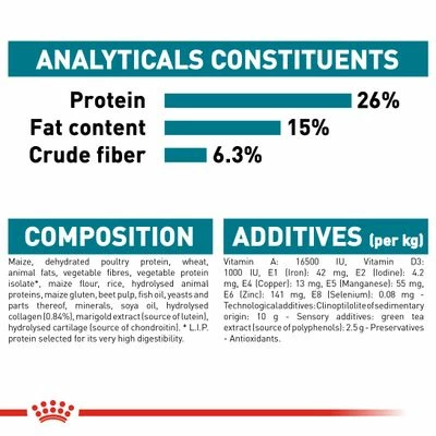 Royal Canin Maxi Joint Care dry dog food has been specially developed for fully grown large dogs weighing 26-44kg. Due to their typical temperament and high body mass, large-breed dogs often experience a particularly heavy strain on their joints, which can lead to stiffness, reduced mobility or other joint problems.