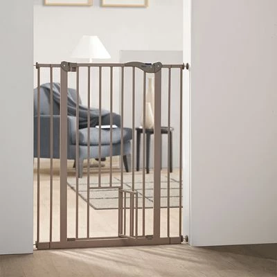 The robust Savic Dog Barrier 2 with integrated cat door is a simple but efficient way to make sure your dog stays out of rooms where it is not supposed to be. There is a two-way door (50 cm width) so that you are able to access the blocked off rooms and there is also a small cat door (H 28 x W 17) that allows cats, puppies and small dogs to go in and out. This little door can be opened and closed separately. Installation is simple and no drilling into walls or door frames is required.