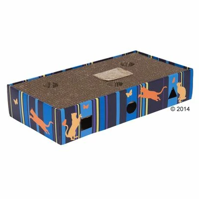 This fun piece of cardboard cat furniture combines two products: a handy scratch pad to help your cat keep its claws in good condition, and an intelligence toy that your cat can play with on its own.