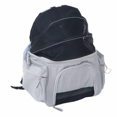 An extremely comfortable pet carrier with a pop-up mesh roof, rain cover and accessory pockets. Suitable for cats and small dogs. Colour: grey