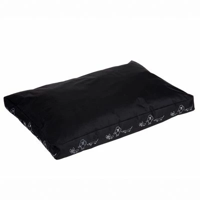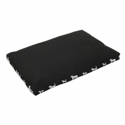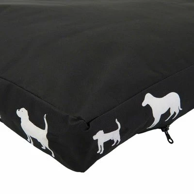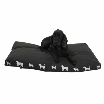 Durable, well-padded dog cushion with a cute dog silhouette pattern and anti-slip base. Suitable for use inside and outdoors. Waterproof and dirt repellent. Great for kennels. Colour: black