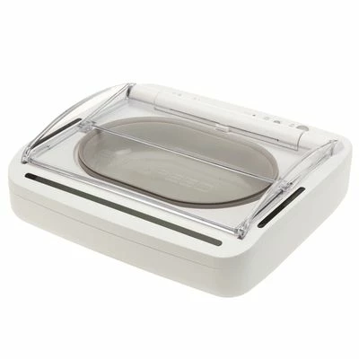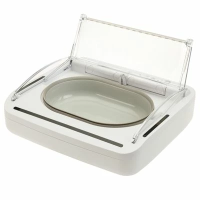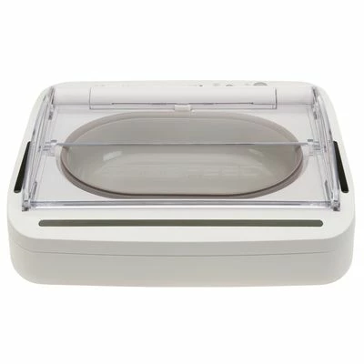 Airtight pet feeder with built-in motion sensor. Suitable for cats and small dogs. Keeps wet food moist and away from insects. Prevents nasty smells.