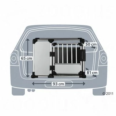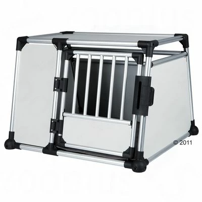 Aluminium dog crates from Trixie are the safe way to transport your dog when travelling by car. The back and the front of the crate slope slightly and it fits easily into the back of the car. The crate is very strong, yet light since it is made from aluminium.