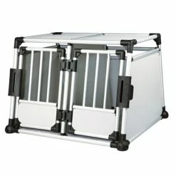 The Trixie Aluminium Double Transport Box is a great option for when you need to transport more than one dog! This particularly sturdy transport box is constructed with a removable partition that creates spaces for either one or two dogs, weighing up to 27kg. Made with two doors, both with safety locks, it ensures that both dogs are safe when travelling. The bottom of the cage is covered in thermo – blankets that provide your dogs with warm protection against the cold, keeping them comfortable as well as safe.