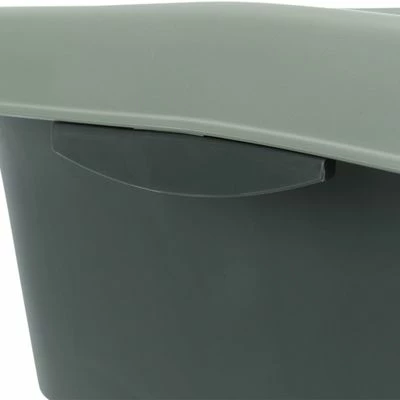 Cat litter tray made of recycled plastic, with removable rim cover, high, curved r im for more cleanliness, without bonnet, modern design in matt green, dimensions: approx. L 58 x W 38 x H 17 cm