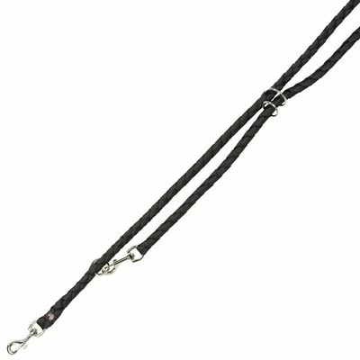 Round braided rope leash for dogs, 3-way adjustable by means of carabiners on metal rings, made of robust & hard-wearing webbing, lies well in the hand, soft & flexible, made of polyester