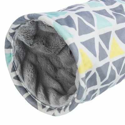 Cosy cuddle tunnel for guinea pigs, dwarf rabbits and other small animals, lined with soft plush, dimensionally stable due to metal rings, pretty triangular pattern, dimensions: L 70 x Ø 19 cm